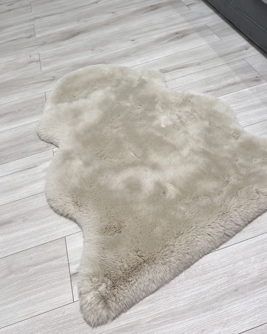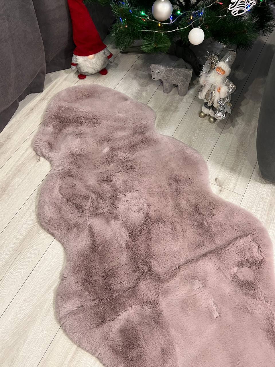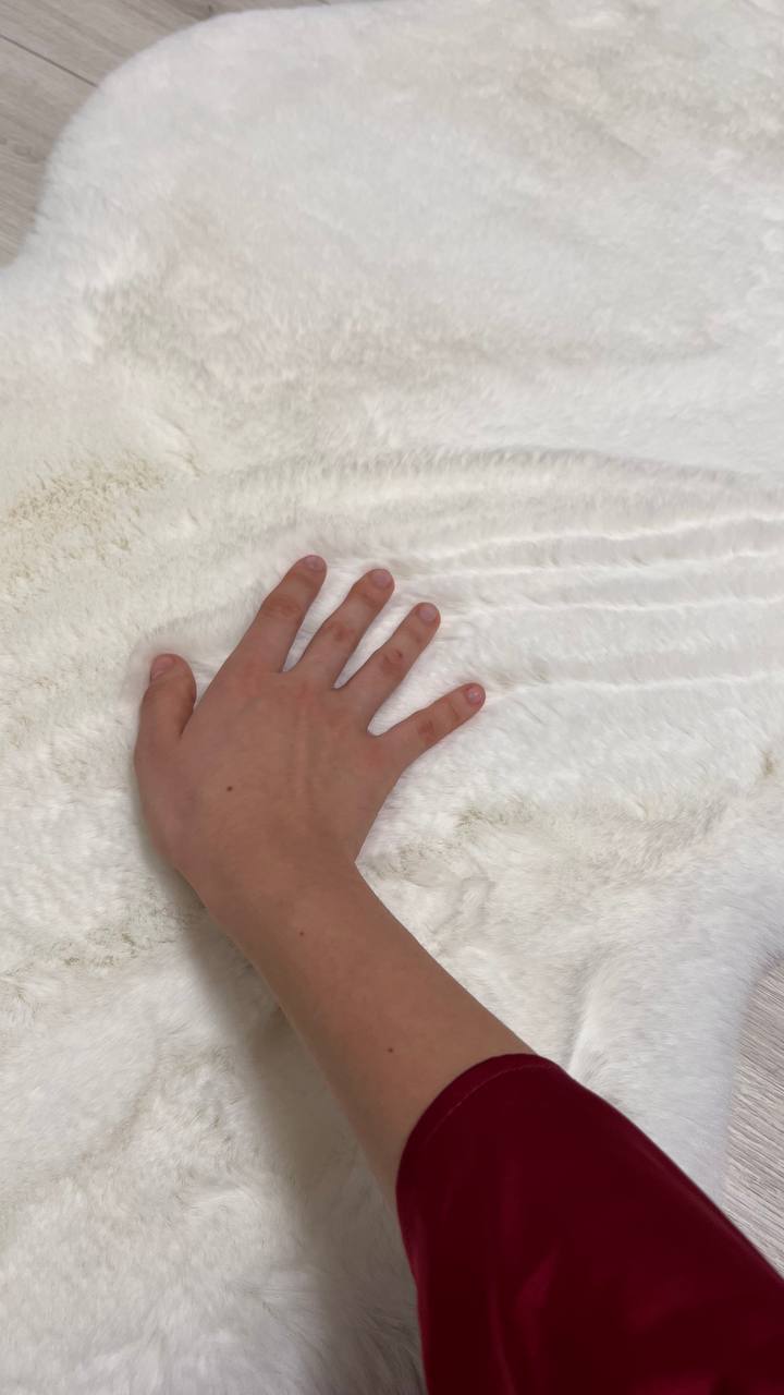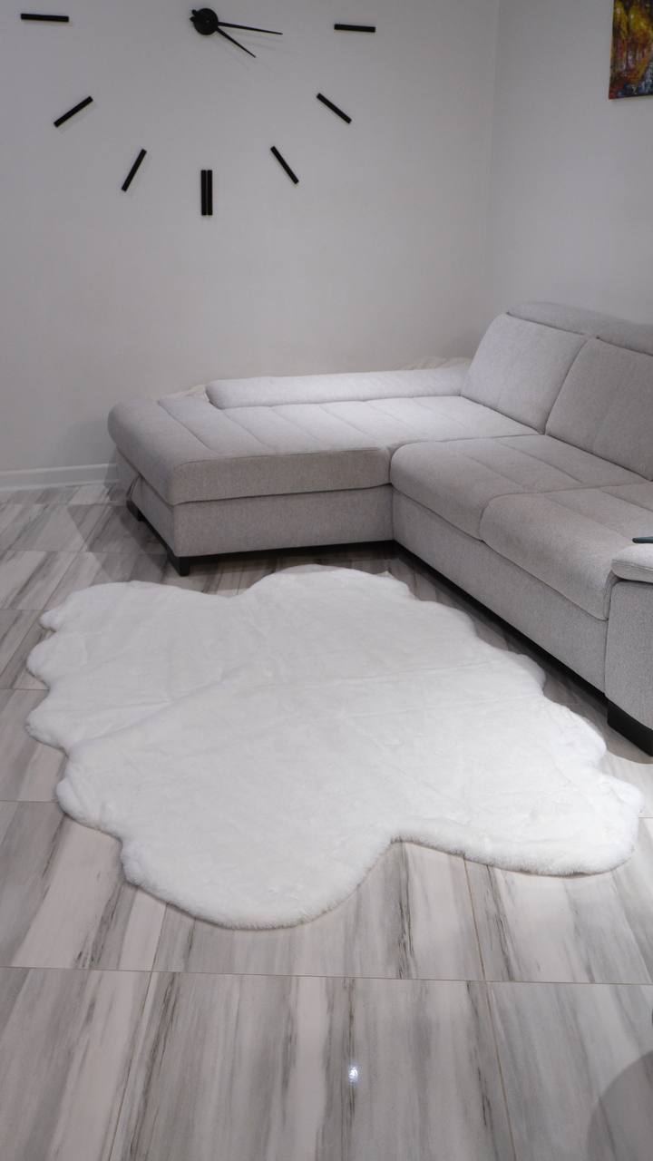 Килим у формі "шкірки" з штучного хутра, але на дотик надзвичайно м'яке та приємне. Хутро не викликає алергії, не осипається, не пропускає холод від підлоги. Висота хутра близько 5 см. З іншого боку є підкладка завдяки якій не ковзає. Представлені в 4 кольорах: білий, сірий, бежевий та пурпуровий