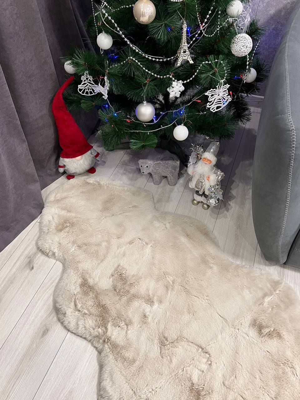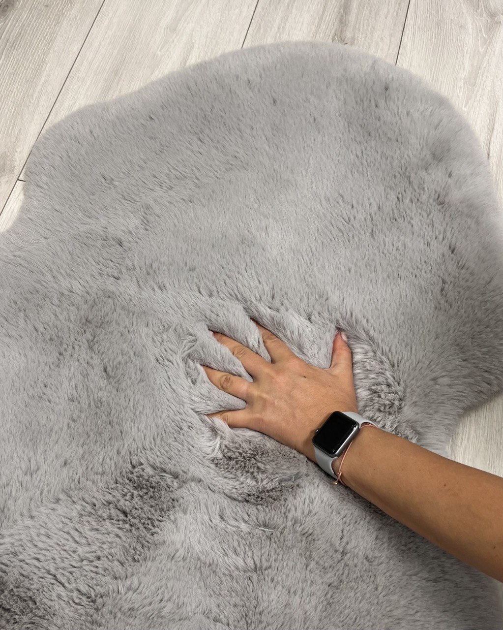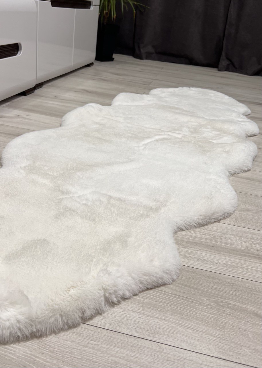 Килим у формі "шкірки" з штучного хутра, але на дотик надзвичайно м'яке та приємне. Хутро не викликає алергії, не осипається, не пропускає холод від підлоги. Висота хутра близько 5 см. З іншого боку є підкладка завдяки якій не ковзає. Представлені в 4 кольорах: білий, сірий, бежевий та пурпуровий