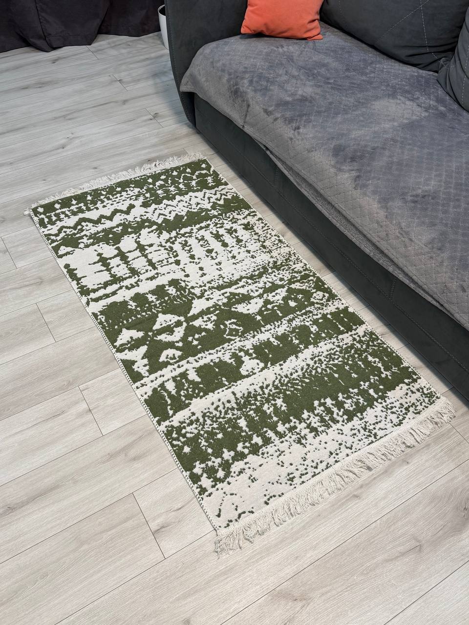 Килим не викликає алергії, приємний на дотик, не пропускає холод від підлоги. На фото розмір 150х80 см, але ця модель є в 4 розмірах. Склад: 100% бавовна, виробник: Туречинна
