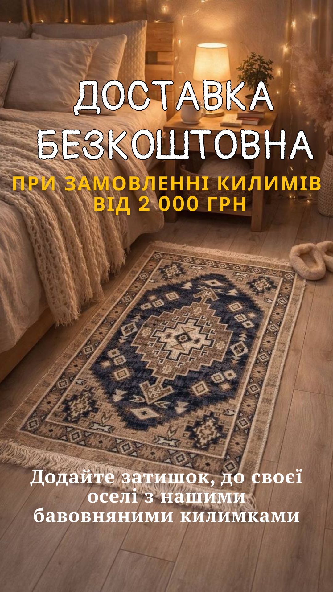 Наші двосторонні бавовняні килими зі 100% натуральної бавовни знову доступні до замовлення .Натуральні, дихаючі, приємні на дотик — вони додають тепла й затишку будь-якій кімнаті, від спальні до вітальні