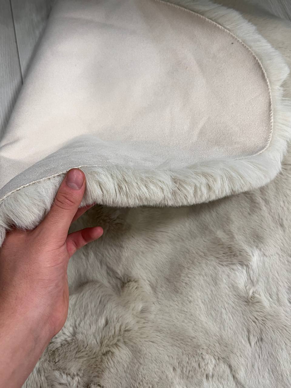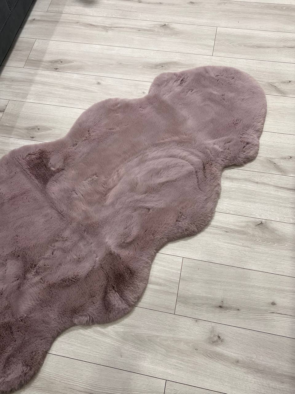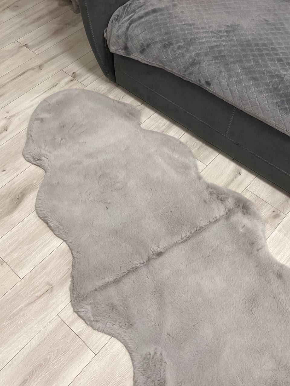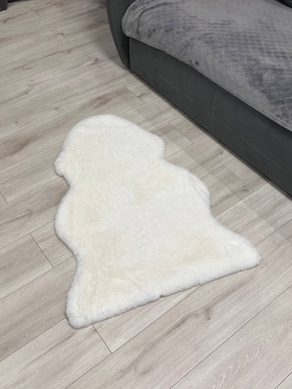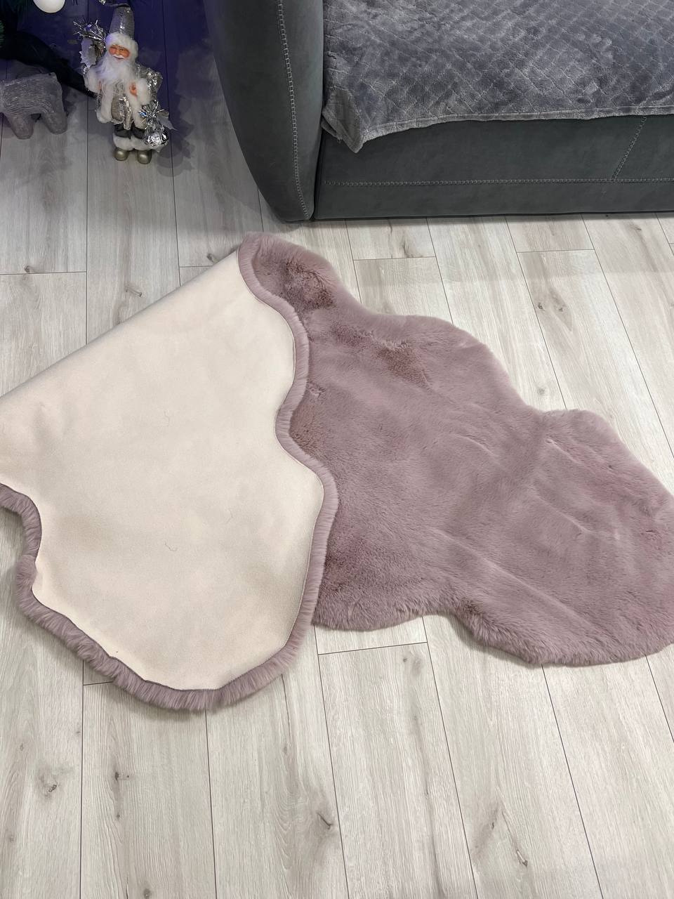 Килим у формі "шкірки" з штучного хутра, але на дотик надзвичайно м'яке та приємне. Хутро не викликає алергії, не осипається, не пропускає холод від підлоги. Висота хутра близько 5 см. З іншого боку є підкладка завдяки якій не ковзає. Представлені в 4 кольорах: білий, сірий, бежевий та пурпуровий