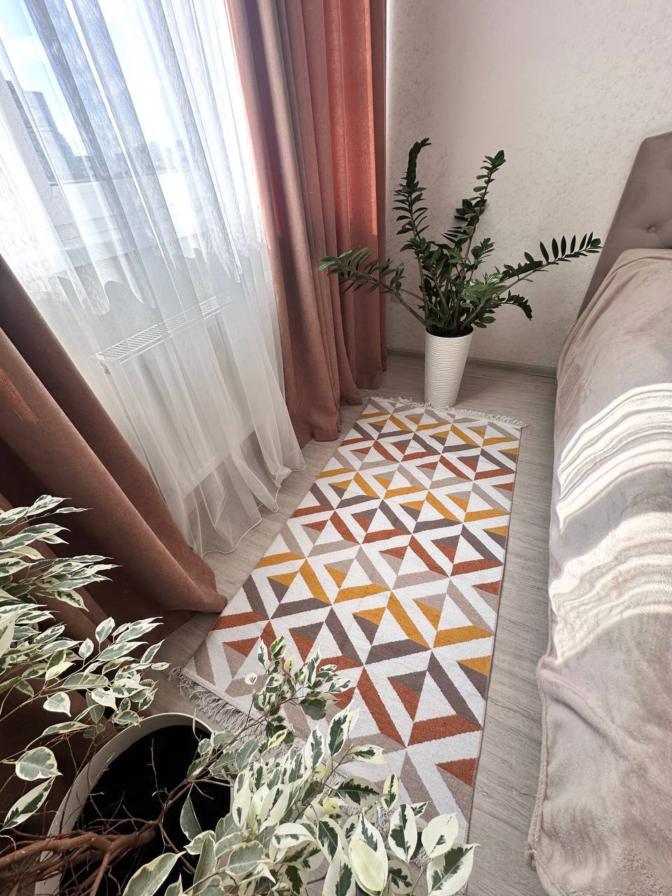 Килим виготовлений з цупкої бавовни, яка не втрачає якості після прання. Такий килим - це чудове доповнення до кухні або спальні. Радимо брати комплектом, адже при замовленні двох доставка безкоштовна